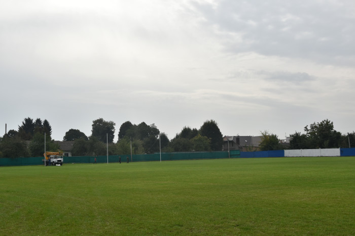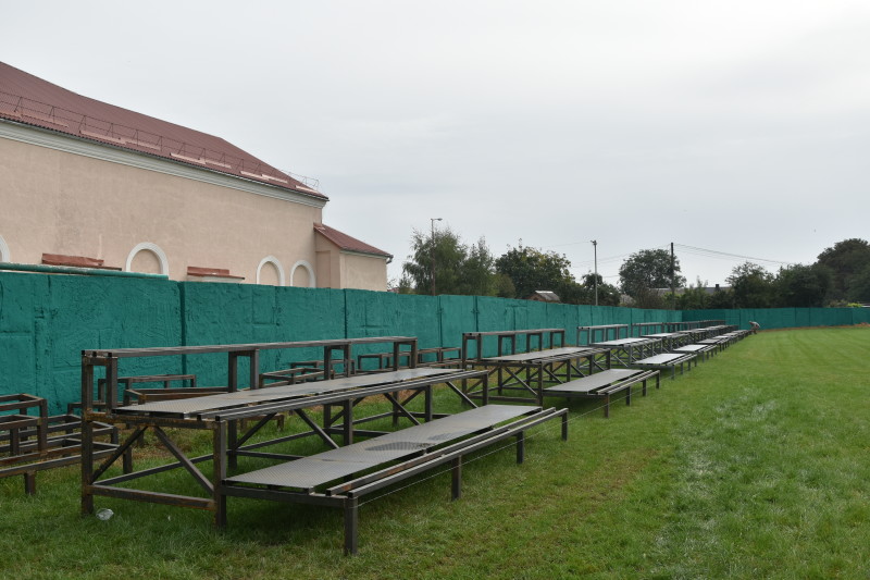Наразі здійснюється монтаж трибун та будуть встановлені футбольні ворота.
