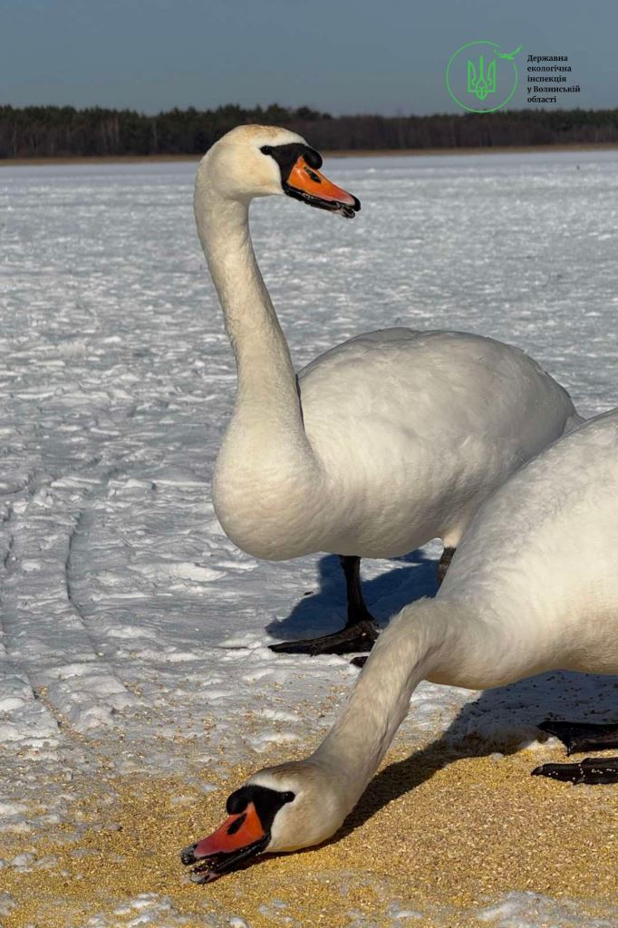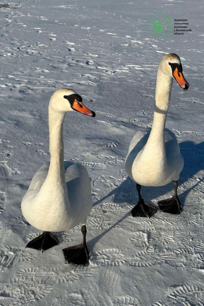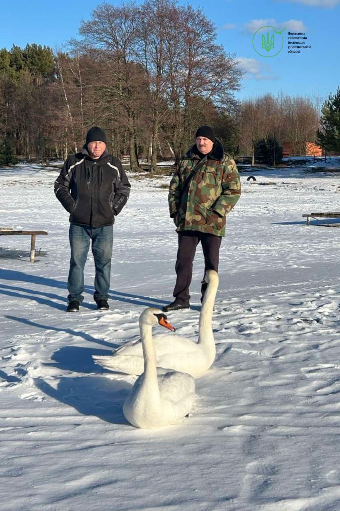 Після виконання професійних завдань, державні інспектори мистецько зафіксували на фото красу волинської природи — родину лебедів на фоні казкових зимових краєвидів.