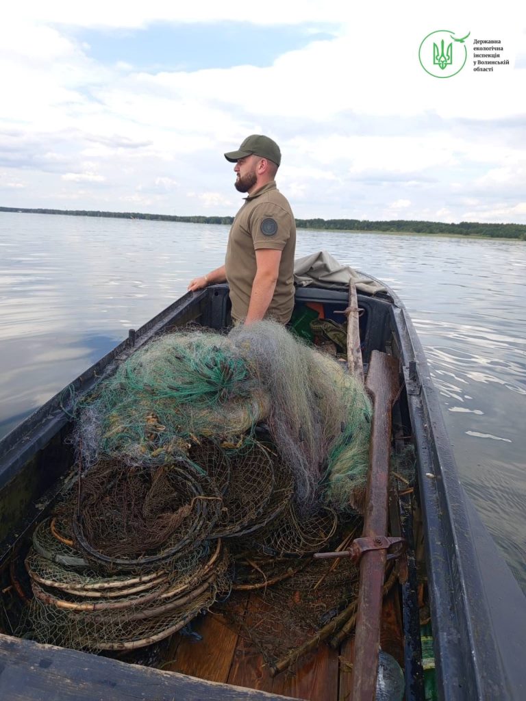 За результатами обстежень водних об’єктів оз. Пулемецьке та оз. Світязь виявили та вилучили заборонені знаряддя лову водних біоресурсів – 19 ятерів та 7 сіток загальною довжиною 520 метрів