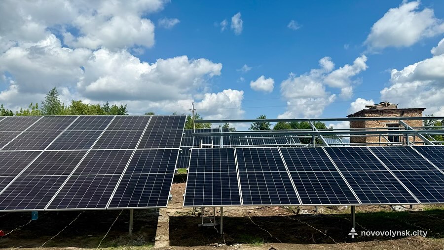 “Десь уже стоять десятки панелей, десь тільки готують землю під опори. Але робота кипить. Проєкт реалізує КП «Нововолинськводоканал» завдяки гранту від UNICEF.