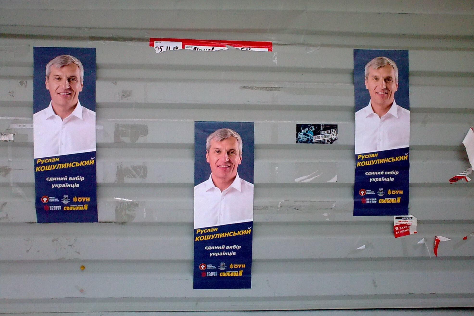 Разом з тим, в смт. Маневичі на Волині у четвер, 3 січня на дошці оголошень біля Маневицького районного центру творчості дітей та юнацтва представник ОПОРИ виявив кілька листівок із зображенням Руслана Кошулинського та символікою партії ВО «Свобода».