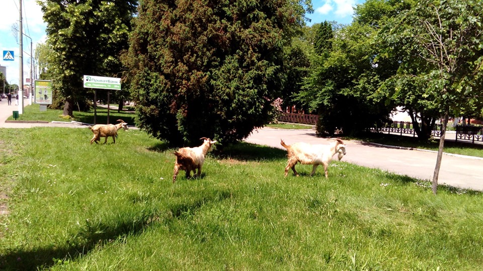 “Козлячі бешкетники біля міської поліклініки пасуться на газонах та перевертають смітники, бігають по лавках, ну хіба це нормально?”, — йдеться у дописі.