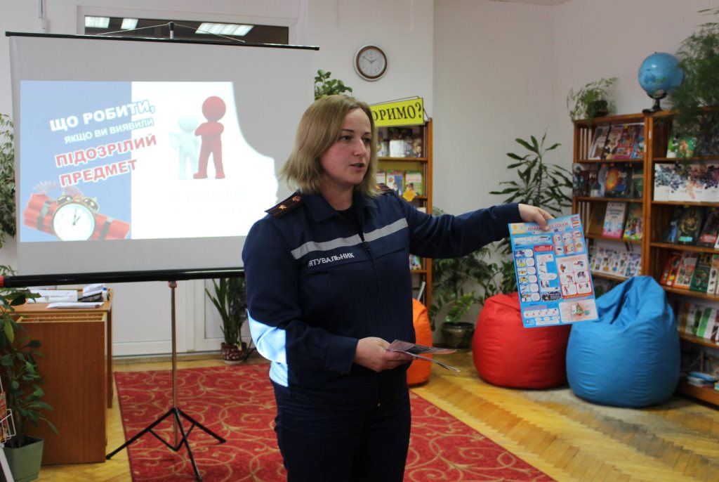 12 грудня у Волинській обласній дитячій бібліотеці відбулася зустріч співробітників Управління ДСНС України у Волинської області з учнями 7-Б класу луцької школи № 17, під час якої говорили про ризики, пов’язані із використанням піротехніки під час новорічних свят.