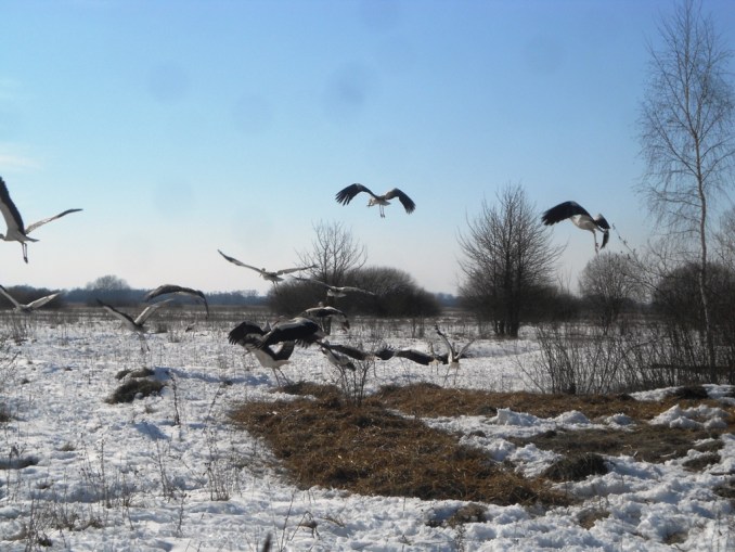 Тож лісівники приєдналися до порятунку – підгодівлі лелек. Закупивши мойви та салаки, працівники ДП «Любомльський лісгосп» виклали поживу на полі, поблизу зграї. Як розповідають, птахи характерно шипіли, побачивши людей, налякано здіймались, відлітали. Однак згодом, за спостереженнями, переконавшись про безпеку, прийнялись ласувати харчами.