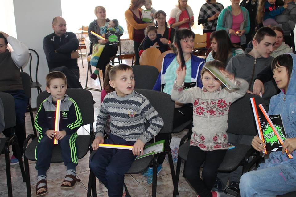 Усім учасникам зустрічі подарували світловідбиваючі браслети та книжечки.