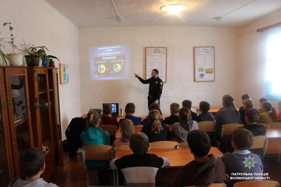 Інспектори патрульної поліції Волині поспілкувалися із учнями Карасинської школи на тему булінгу.
