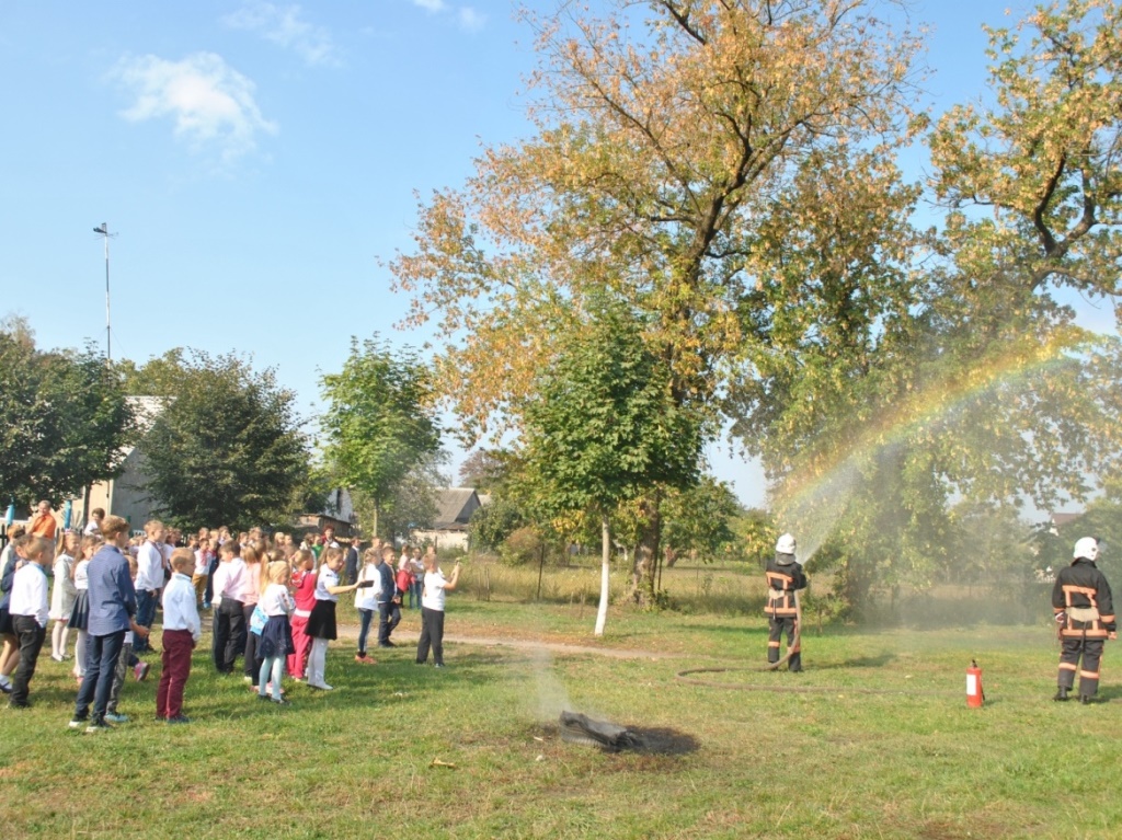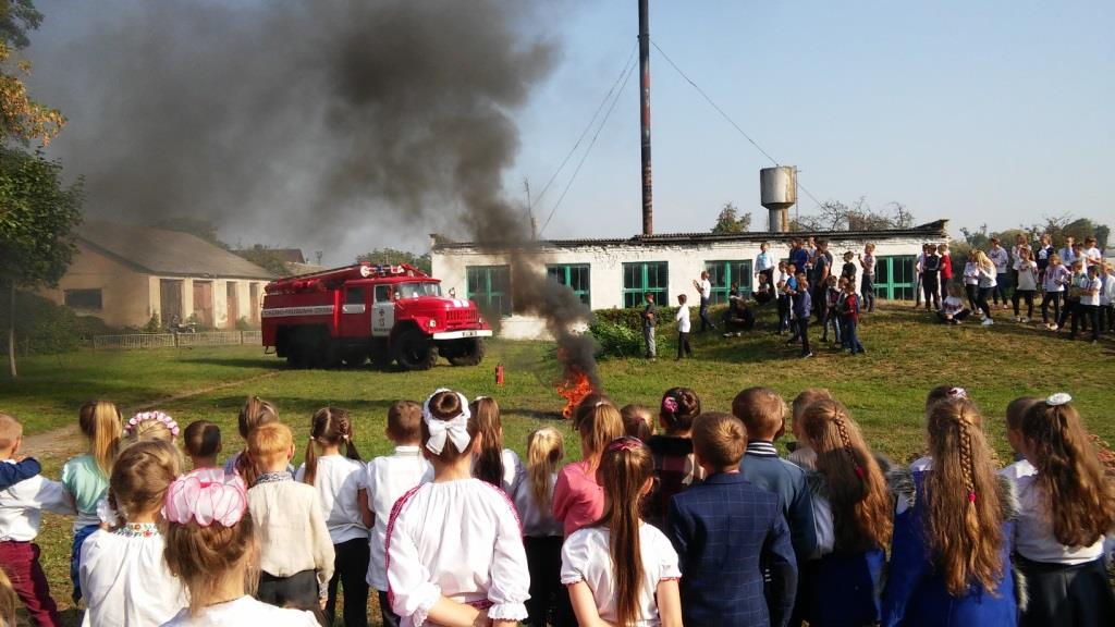 Рятувальники розповіли учням основні правила протипожежної безпеки поведінки для запобігання пожеж та порядок дій під час виникнення різних надзвичайних ситуацій. Також рятувальники продемонстрували учням можливості пожежно-рятувальної техніки та рятувального обладнання та методи гасіння вогню за допомогою первинних засобів пожежогасіння та навчили школяриків власноруч гасити полум’я вогнегасником.