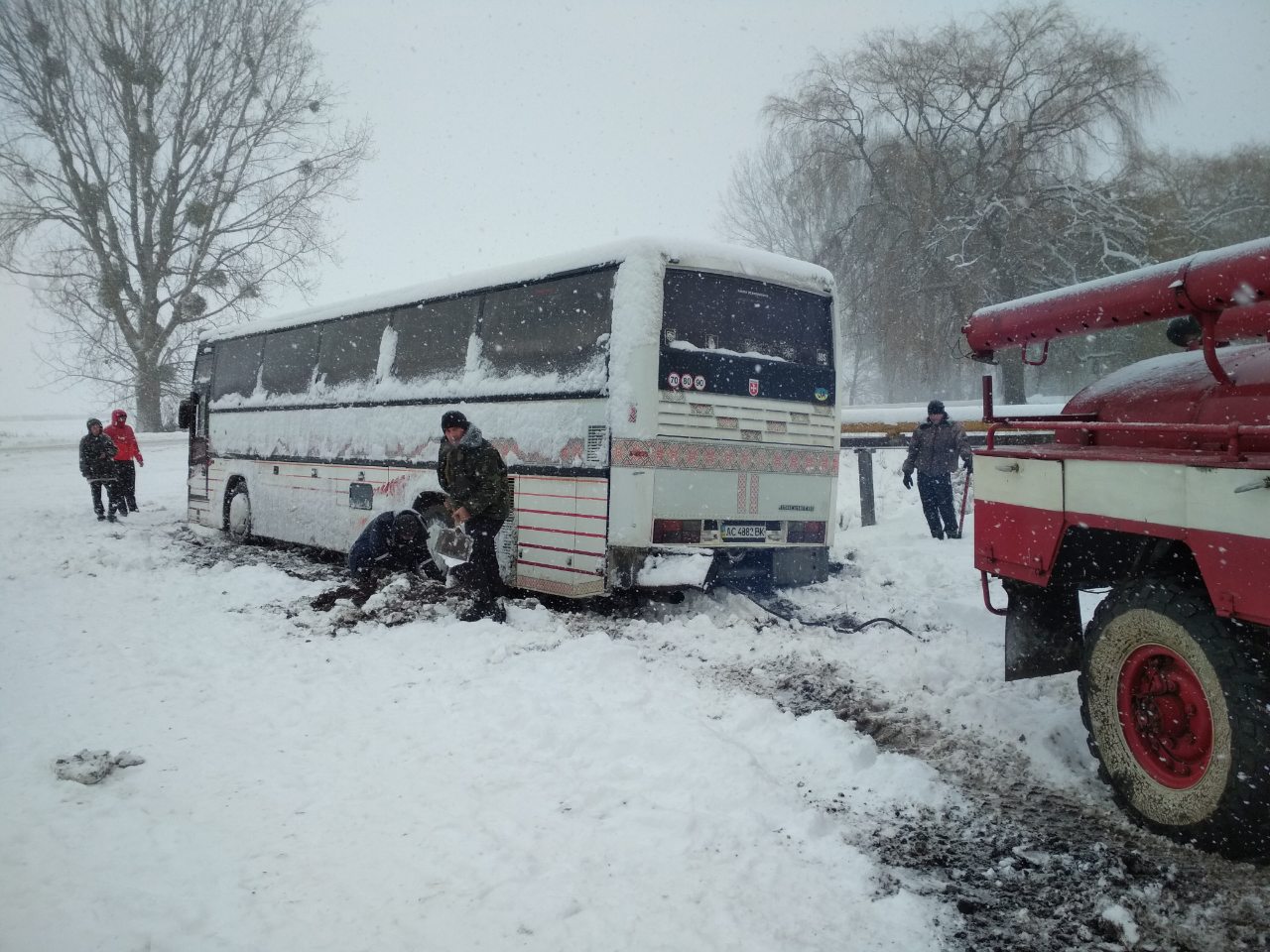 На Волині у снігових заметах застрягли два рейсових автобуси. ФОТО
