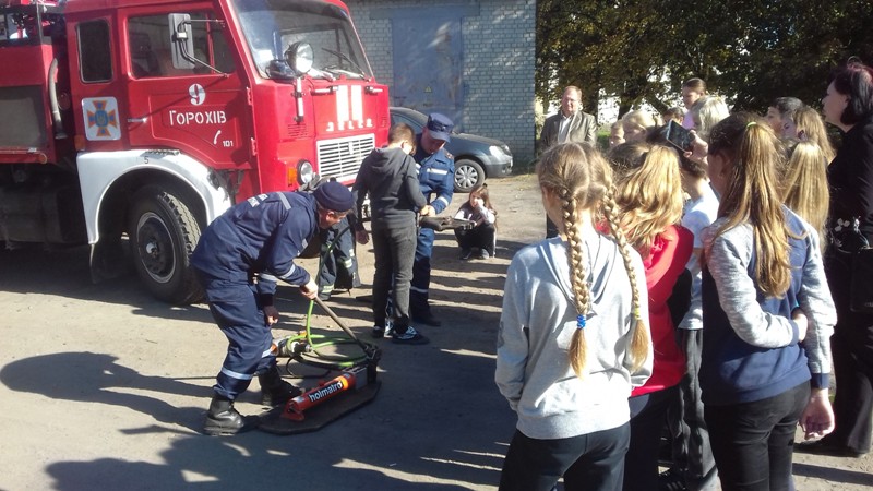 16 жовтня працівники 9-ї Державної пожежно-рятувальної частини міста Горохова провели для вихованців міської школи-гімназії № 1 заняття у рамках Акції «Запобігти. Врятувати. Допомогти».