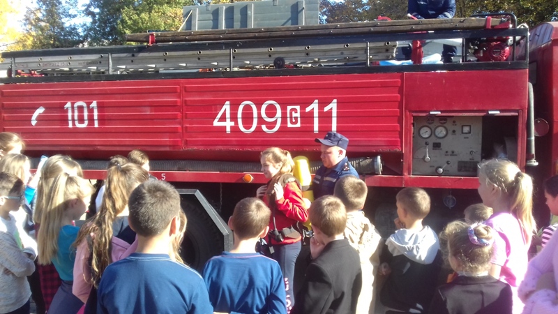 Усі охочі могли випробувати себе у ролі вогнеборців. Школярі приміряли каски та елементи спорядження пожежних, сиділи у кабіні автомобіля, а також фотографувалися на згадку про зустріч із працівниками ДСНС.