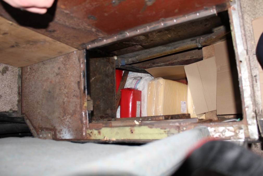 Під час спільного прикордонно-митного огляду, правоохоронці виявили різні спеціально обладнані схованки, з яких дістали майже 800 кг твердого сиру.