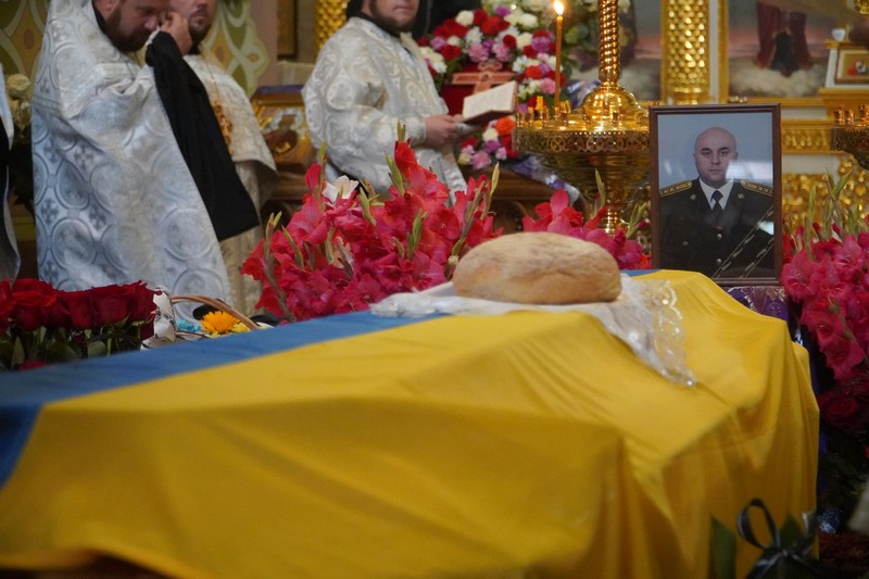 Відспівували  56-річного полковника, який більшу частину свого життя присвятив службі у правоохоронних органах, у Зимненському монастирі. Тож попрощатись із загиблим та висловити співчуття його згорьованій родині приїхало чимало поліцейських з усієї області, а також військовослужбовців та представників влади.