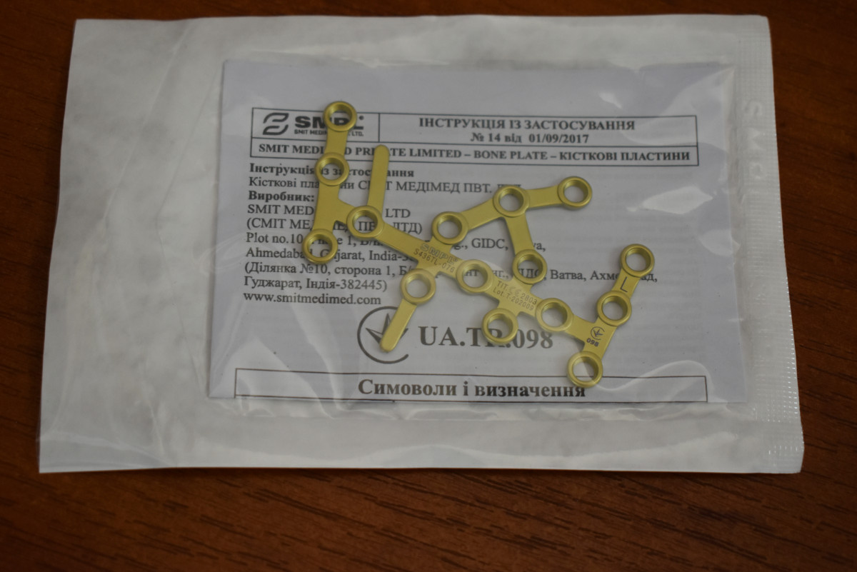 Для лікування переломів кісток верхніх та нижніх кінцівок наших воїнів один з медзакладів Волині отримав комплекти металофіксаторів – пластини із титанового сплаву з гвинтами до них. Їх закупив на 250 тисяч гривень благодійний фонд «Сучасна Україна».