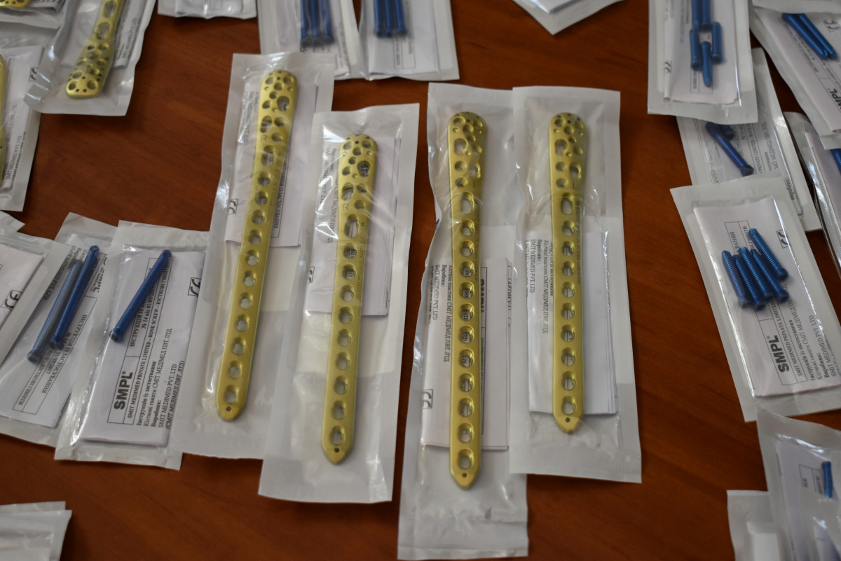 Як розповів представник шпиталю, який одержав обладнання, титанові пластини ставляться у випадку перелому кісток, аби її відновити та зберегти рухливість. Це обладнання значно пришвидшує час реабілітації пацієнта.