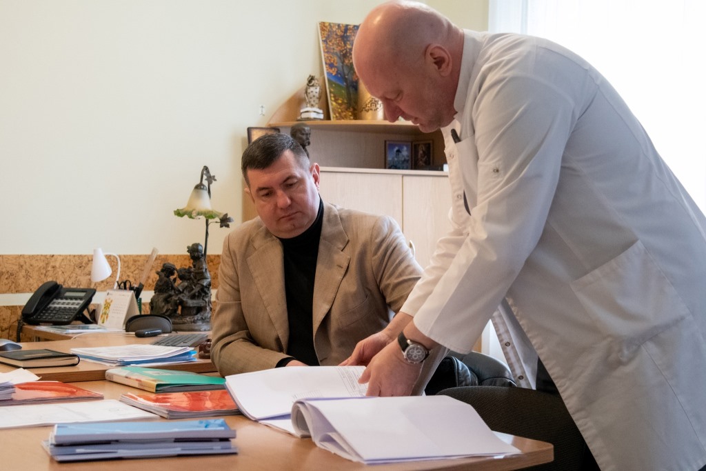 Григорій Недопад оглянув два будівельних майданчики на базі обласної клінічної лікарні. У березні тут розпочали роботи з реконструкції приміщень під новітнє обладнання для лікування онкопатології та створення реабілітаційного центру в рамках започаткованого подружжям Пінчуків національного проєкту RECOVERY, метою якого є відновлення, допомога в протезуванні та лікуванні тяжкопоранених під час війни.