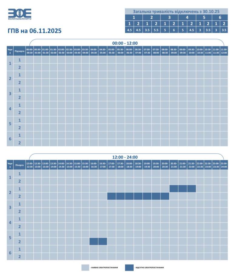 Час фактичного відключення та відновлення електропостачання може відрізнятися на 20–30 хвилин через технологічний процес перемикання черг.