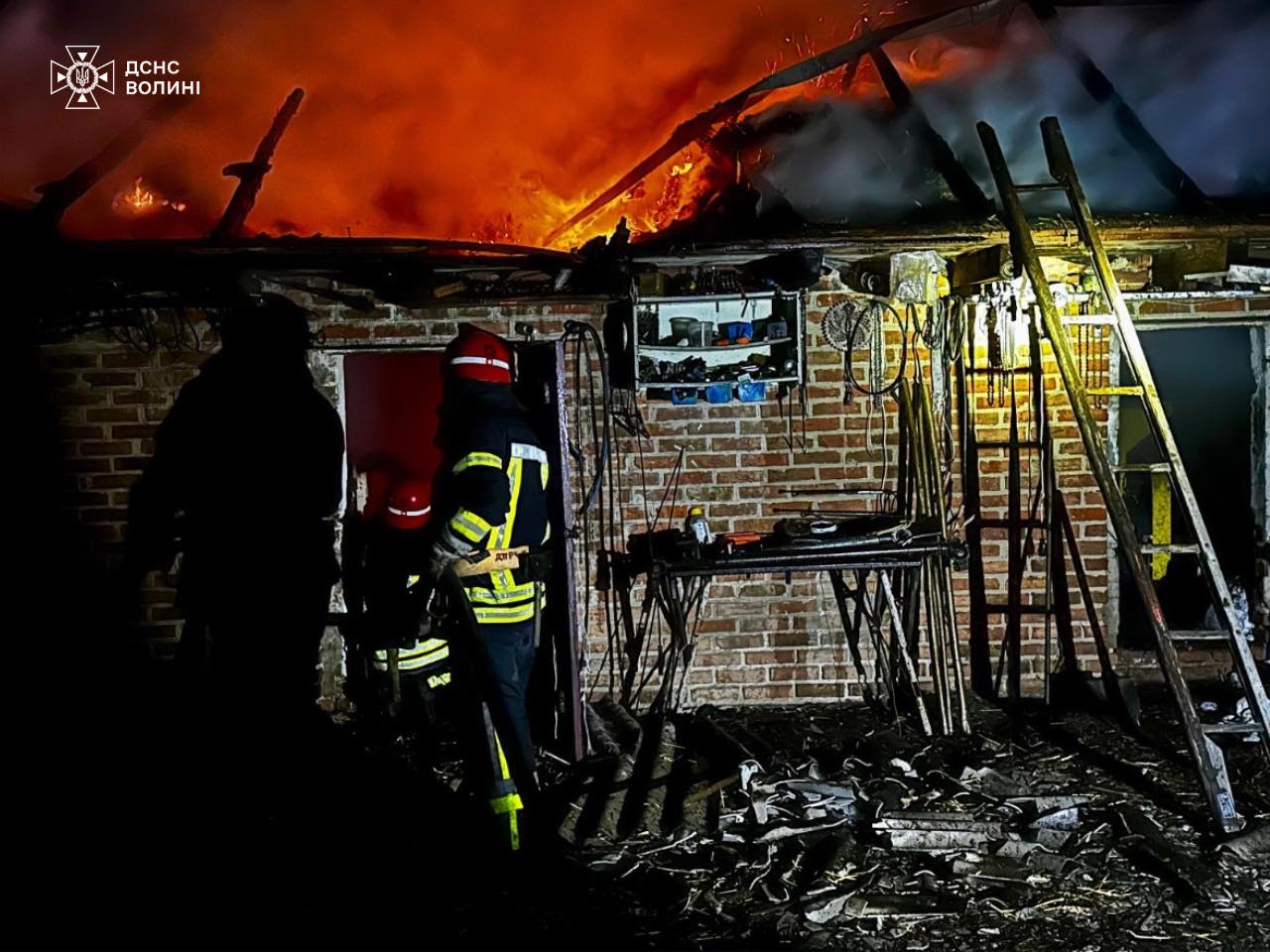 1 листопада о 00:39 надійшло повідомлення про пожежу цегляної господарської будівлі в с. Березолуки Луцького району. На місце пожежі спрямували рятувальників 3-ї ДПРЧ міста Рожище та працівників МПО Доросині, які за допомогою двох спеціальних пожежних стволів о 03:35 ліквідували пожежу. Потерпілих немає, причина пожежі встановлюється.
