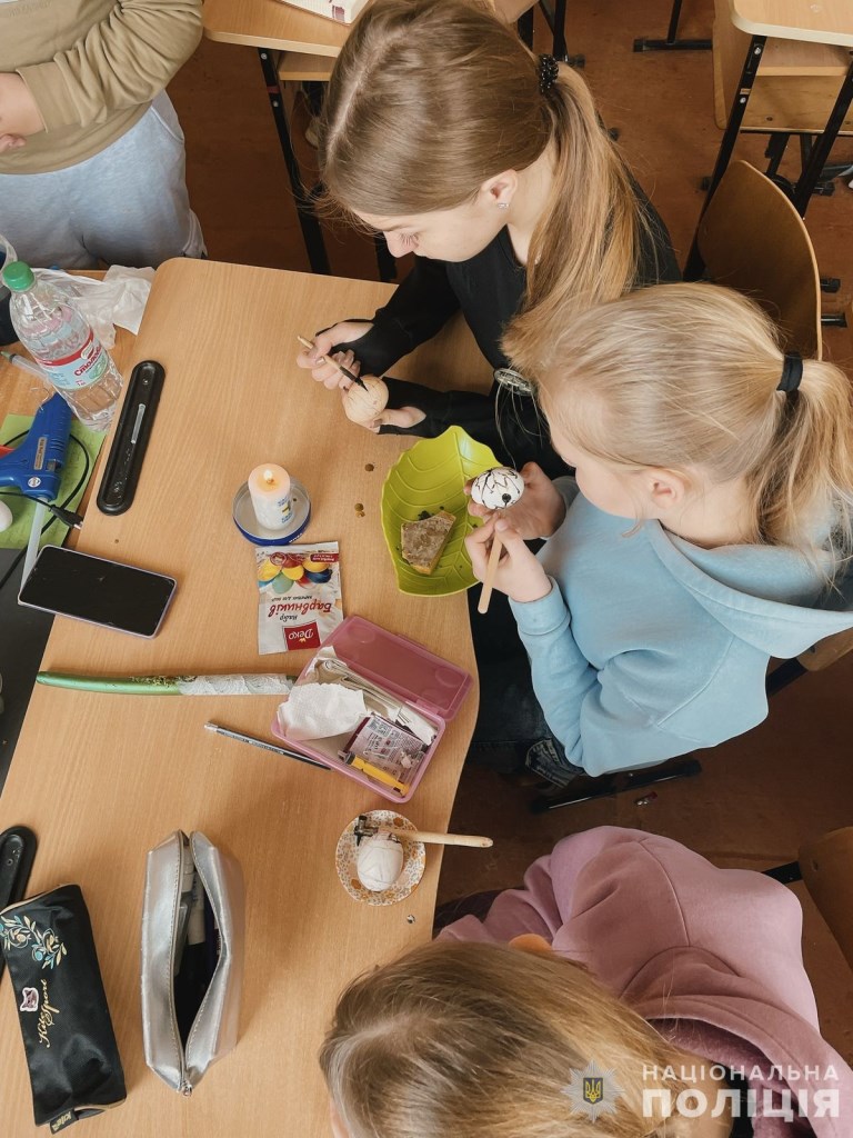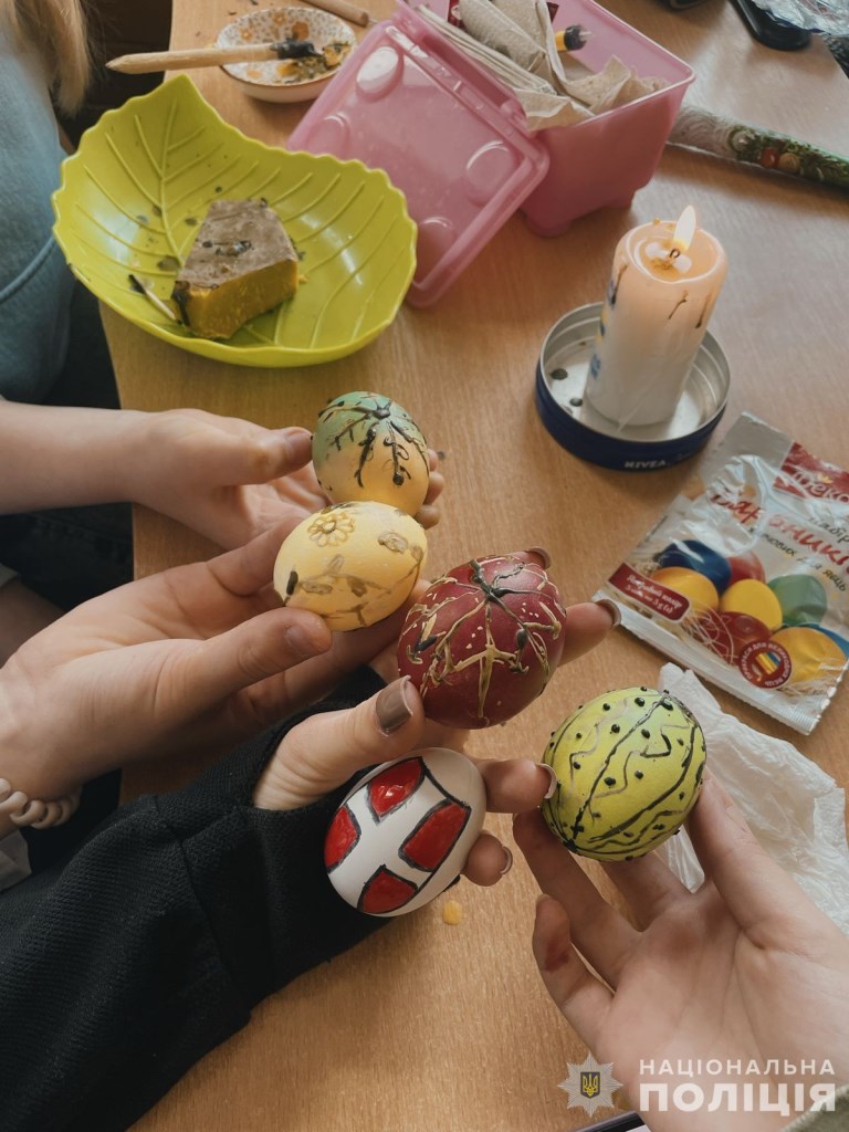 Після цікавих розповідей інспекторів служби освітньої безпеки про історію виникнення писанки, її символіку та значення кольорів і візерунків, діти активно розмальовують великодні яйця. Кожен намагається створити неповторний великодній символ, вкладаючи в нього частинку своєї душі.