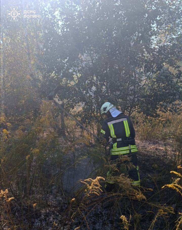 У другій половині дня 30 серпня горіла суха трава і чагарники за селом Литовеж у Володимирському районі, суха трава – в Рожищенській громаді, а в Олицькій громаді через займання сухостою в приватному домогосподарстві був ризик перекидання полум’я на житлові будинки.