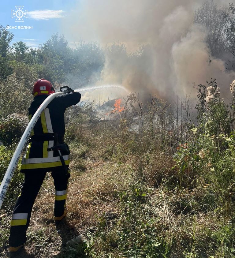 у місті Володимирі на вулиці Луцькій згоріло 0,3 га сухостою;