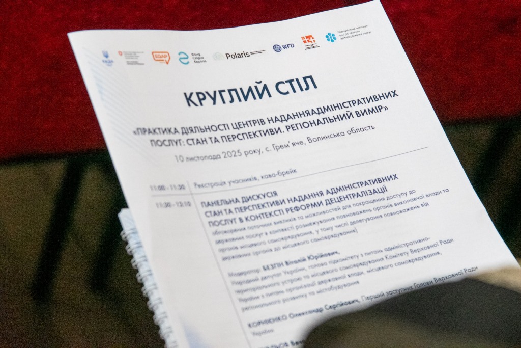 Круглий стіл на таку тему за партнерства швейцарсько-української Програми EGAP, що виконується Фондом Східна Європа, шведсько-української Програми Polaris «Підтримка багаторівневого врядування в Україні» та Вестмінстерської фундації за демократію відбувся на Волині. Його учасниками стали голова обласної ради Григорій Недопад, віце-спікер Верховної Ради України Олександр Корнієнко, парламентарі Вячеслав Рубльов та Віталій Безгін, начальник ОВА Іван Рудницький, а також лідери громад та очільники центрів надання адміністративних послуг області.
