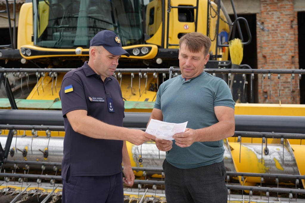 Офіцери оглянули наявну пожежну техніку та відпрацювали з вогнеборцями місцевої пожежної команди алгоритм ліквідації пожежі стерні. Разом з керівником підприємства вони оглянули зернові поля господарства та визначили їх необхідність обкошування і оборювання, а також про наслідки самовільного спалювання стерні.
