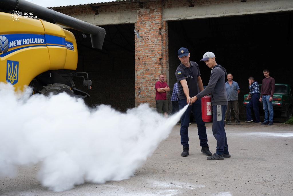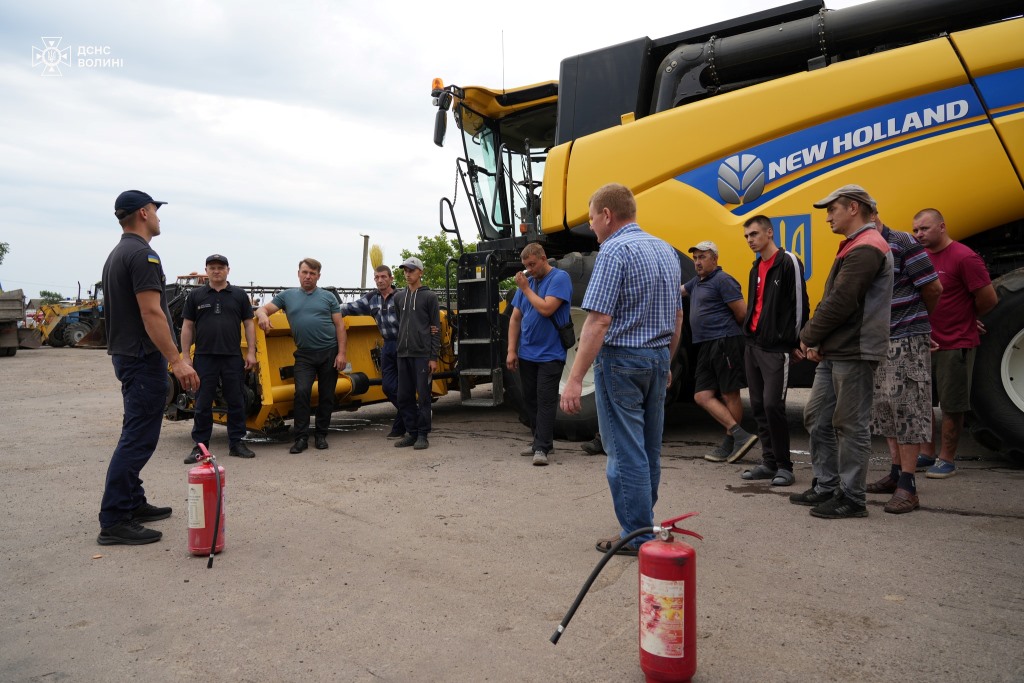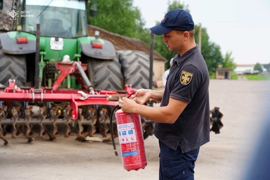 У розпал жнив офіцери-рятувальники Луцької громади ДСНС Волині допомагають аграріям забезпечити пожежну безпеку зернових та навчають, як діяти у випадку пожежі.