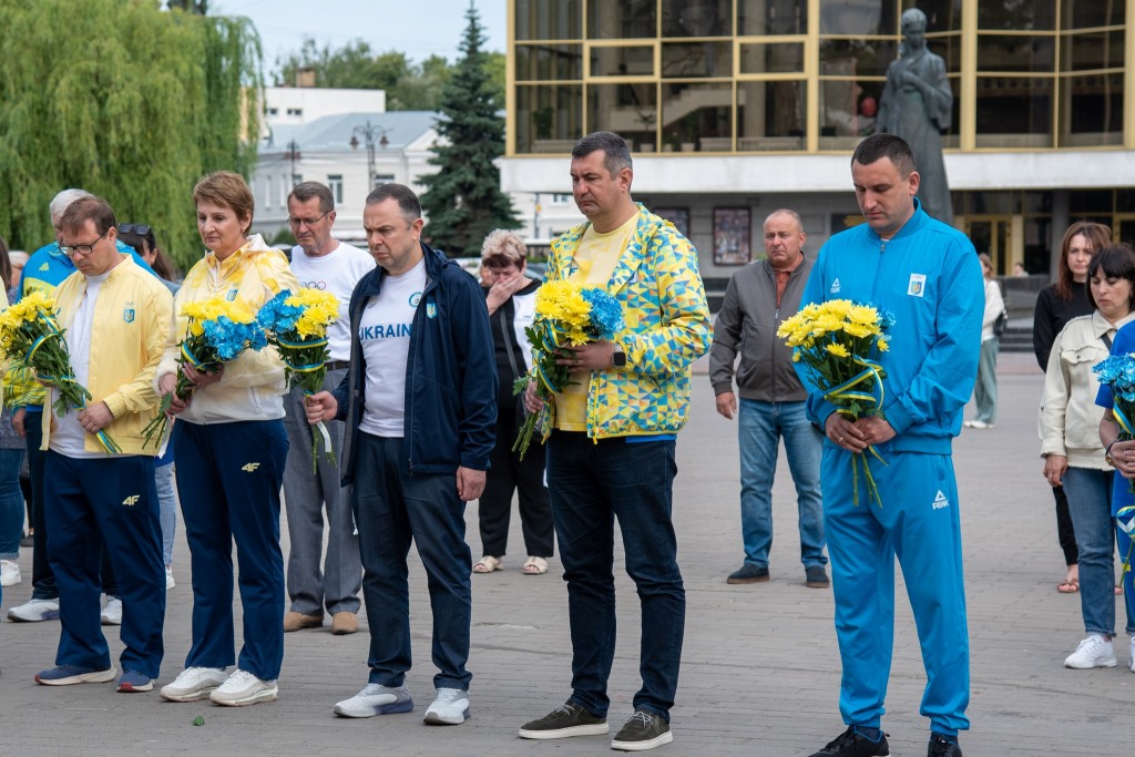 Президент НОКУ Вадим Гутцайт, голова обласної ради, керівник Волинського відділення НОК Григорій Недопад, очільники регіональних відділень Національного олімпійського комітету України з різних куточків держави та спортивна спільнота регіону вклонилися світлій пам’яті новітніх українських Героїв та поклали квіти до пам’ятного фотостенду «Герої Небесної Сотні – Загинули за Єдність України».