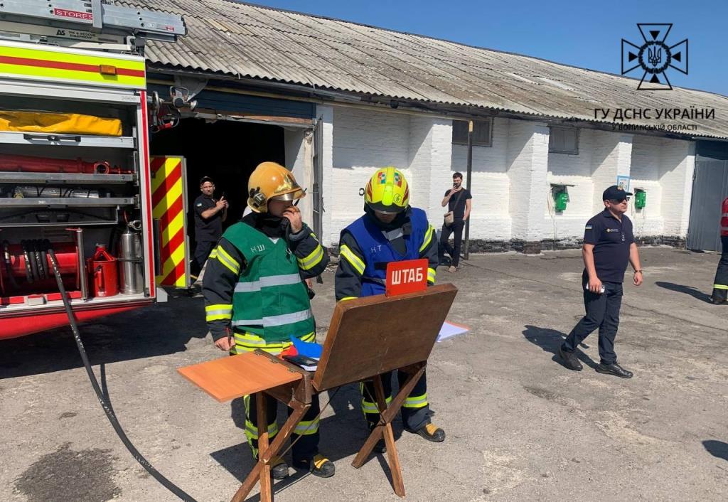 У ході навчань відпрацьовували дії з гасіння пожежі та проведення рятувальних робіт на об’єктах зберігання та переробки нового врожаю зернових.
