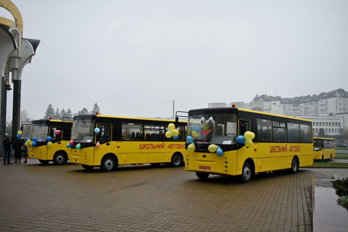 Вручення ключів від 15 нових шкільних автобусів відбулося сьогодні на Київському майдані обласного центру за участю голови облдержадміністрації Юрія Погуляйка. Ще два автобуси школи отримали дещо раніше і сьогодні вони вже довозять до навчальних закладів дітей, у тому числі з особливими потребами.