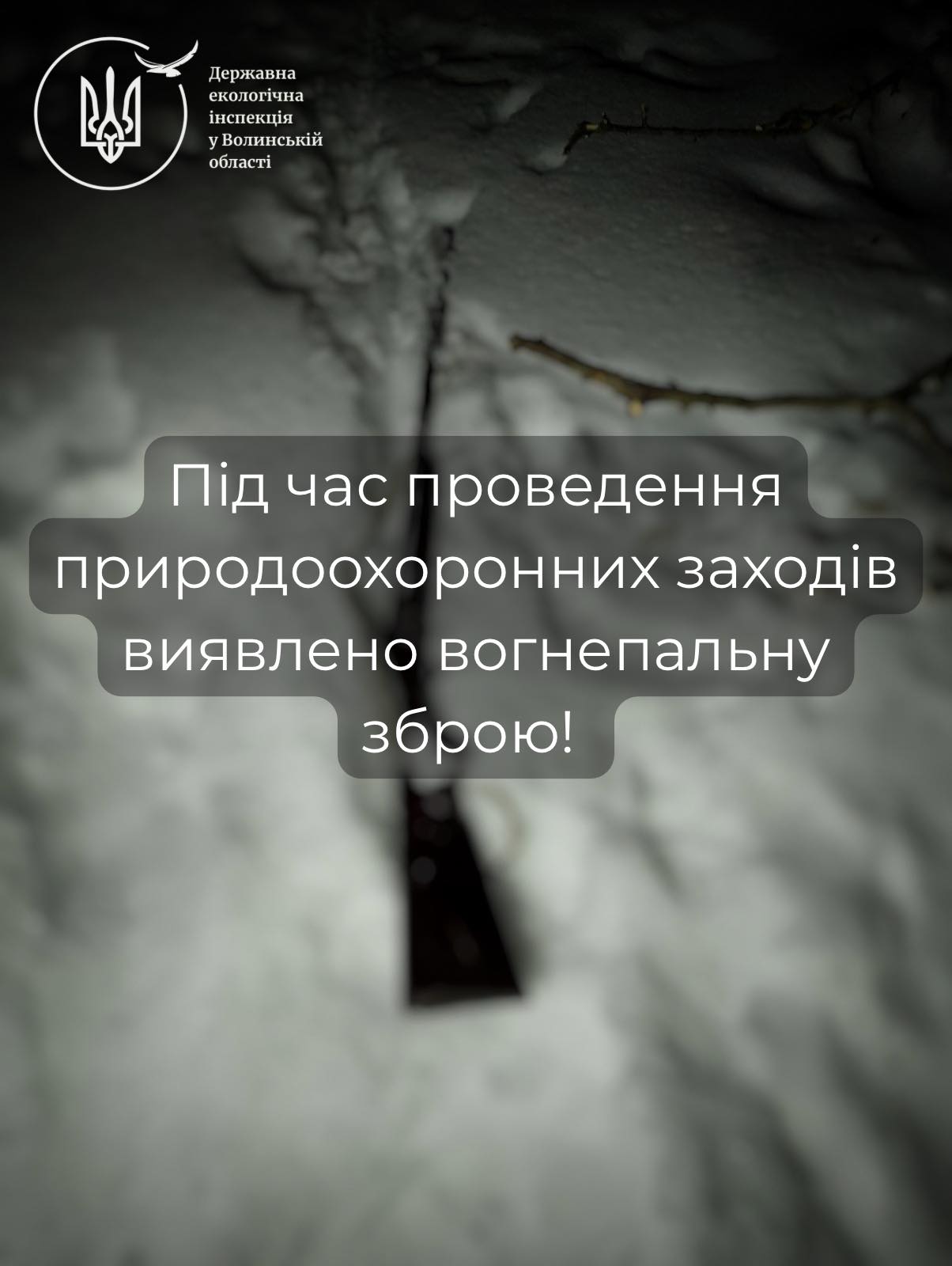 23 січня інспектори Державної екологічної інспекції у Волинській області неподалік річки Коростинка, поблизу села Великий Курінь, виявили мисливську рушницю.