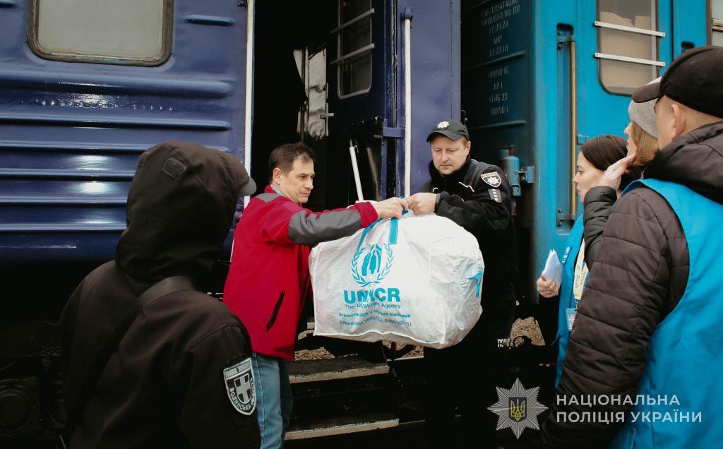 Поліцейські Ковельського Районного управління ГУНП у Волинській області допомогли людям зійти з потяга, перенести речі та забезпечили їхній супровід до транспорту, який доставить внутрішньо переміщених осіб до місць тимчасового розміщення у Луцькому, Ковельському та Володимирському районах.