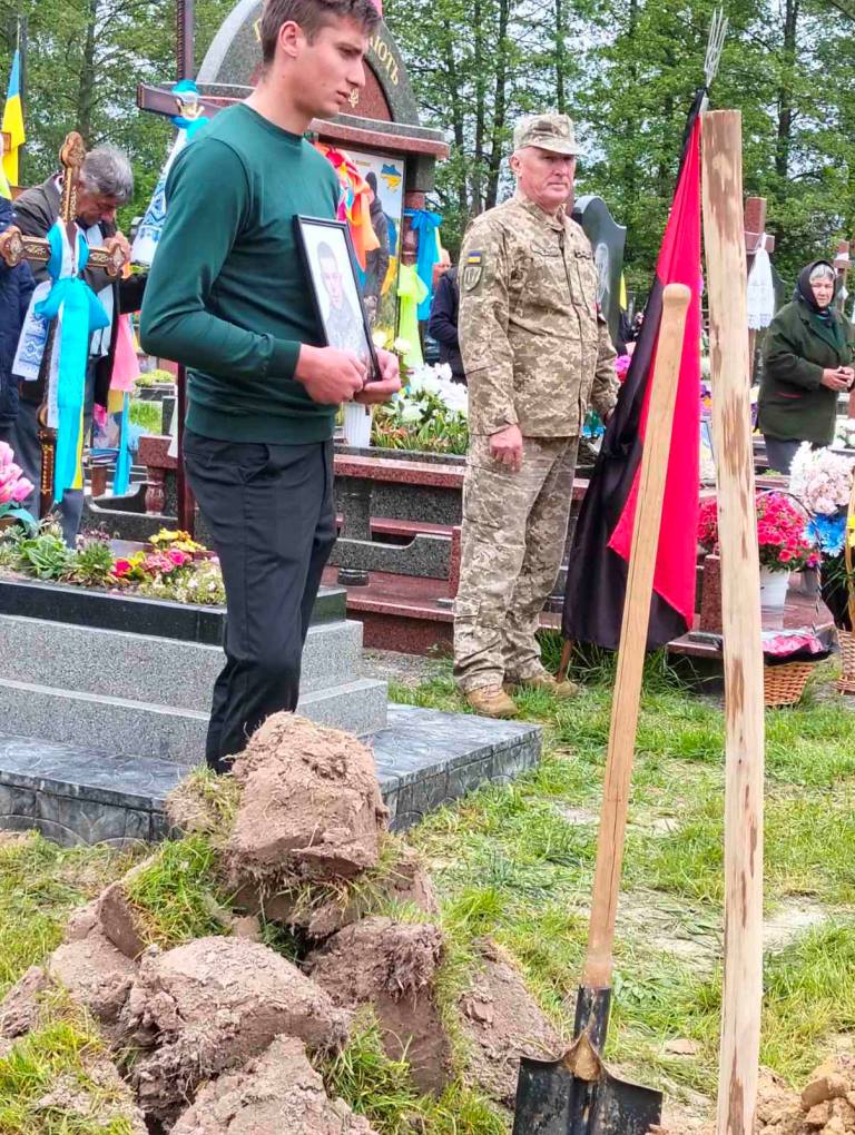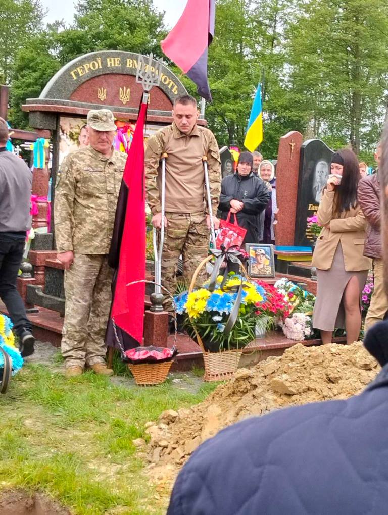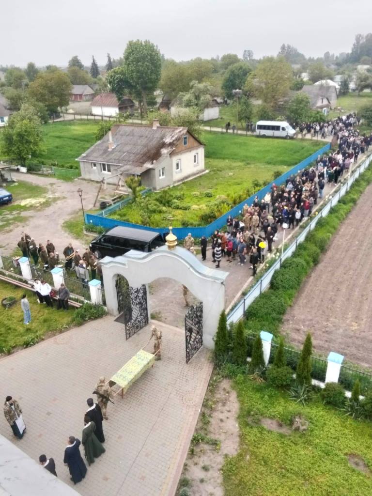 Під звуки Державного Гімну, виконаного військовим оркестром, і залпи почесних пострілів, тіло Героя було поховано.