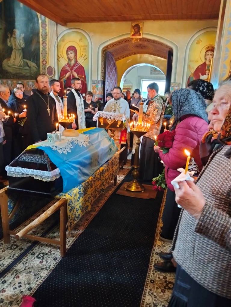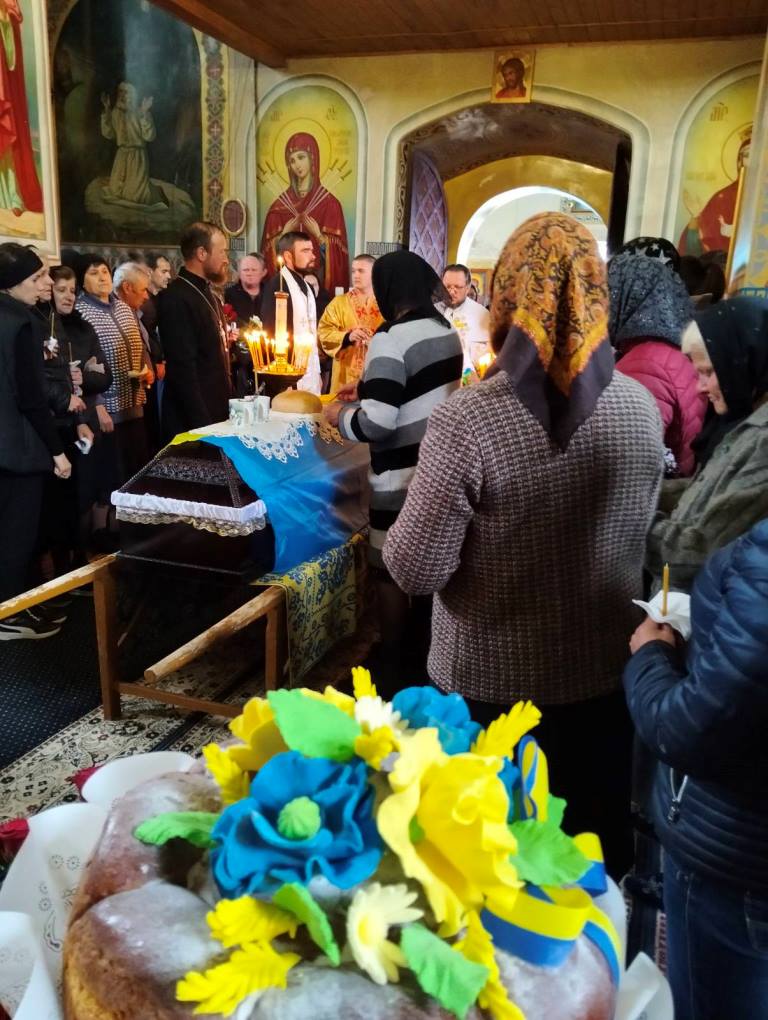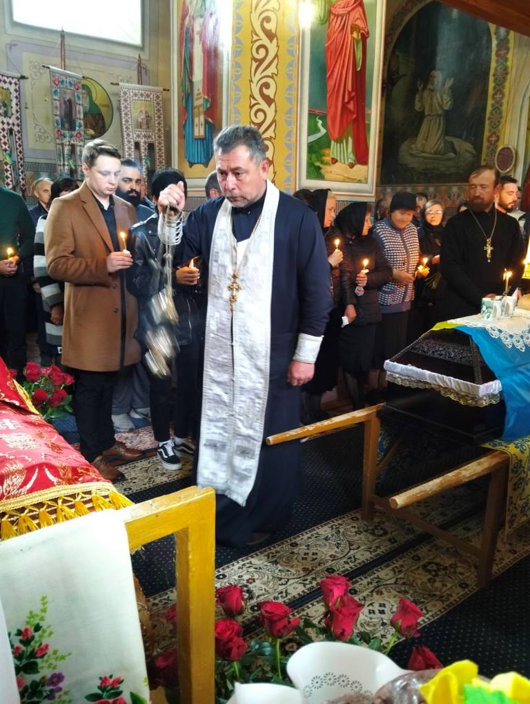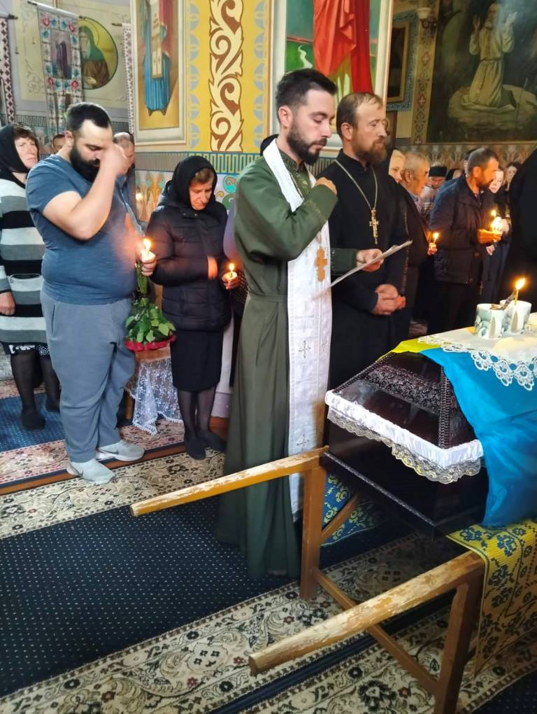 Рідні, священнослужителі, односельчани та побратими разом молилися за упокій душі загиблого Героя.