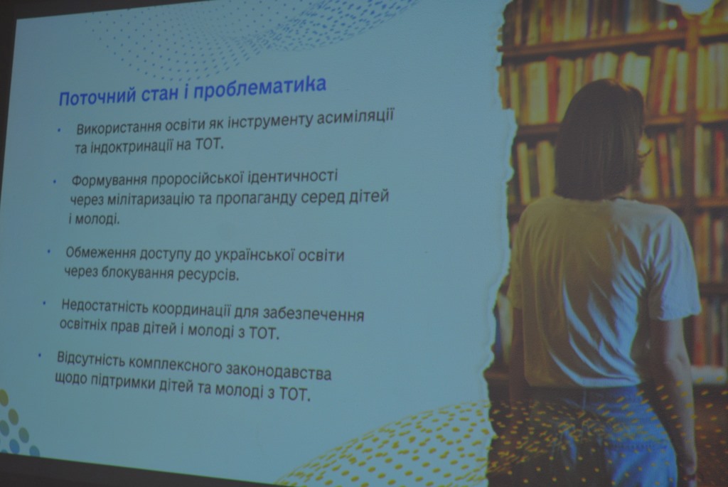 Презентуючи доповідь, представниця Уповноважено на Волині Юлія Спас констатувала, що на ТОТ нині перебувають близько 600 тисяч дітей шкільного віку і лише 7 % з них мають дистанційний доступ до української системи освіти. При чому, навчаються вони практично підпільно. Держава-агресор примушує здобувати освіту за своїми стандартами, використовуючи погрози, переслідування й адміністративний тиск. Обмежується доступ до інтернету, блокуються VPN-сервіси. Діти, які одночасно навчаються на ТОТ і дистанційно в українських школах, мають надмірне навантаження, що призводить до фізичного і психологічного виснаження. Молодь, яка виїздить з ТОТ на підконтрольну Україні територію, аби продовжити навчання у професійно-технічних закладах чи вишах, також стикаються з викликами і загрозами – переїзд, фільтрація, адаптація до нових умов, відсутність соціальної підтримки. І це – лише частина великого масиву проблем. Висновок омбудсмана: держава робить недостатньо для дітей з ТОТ.