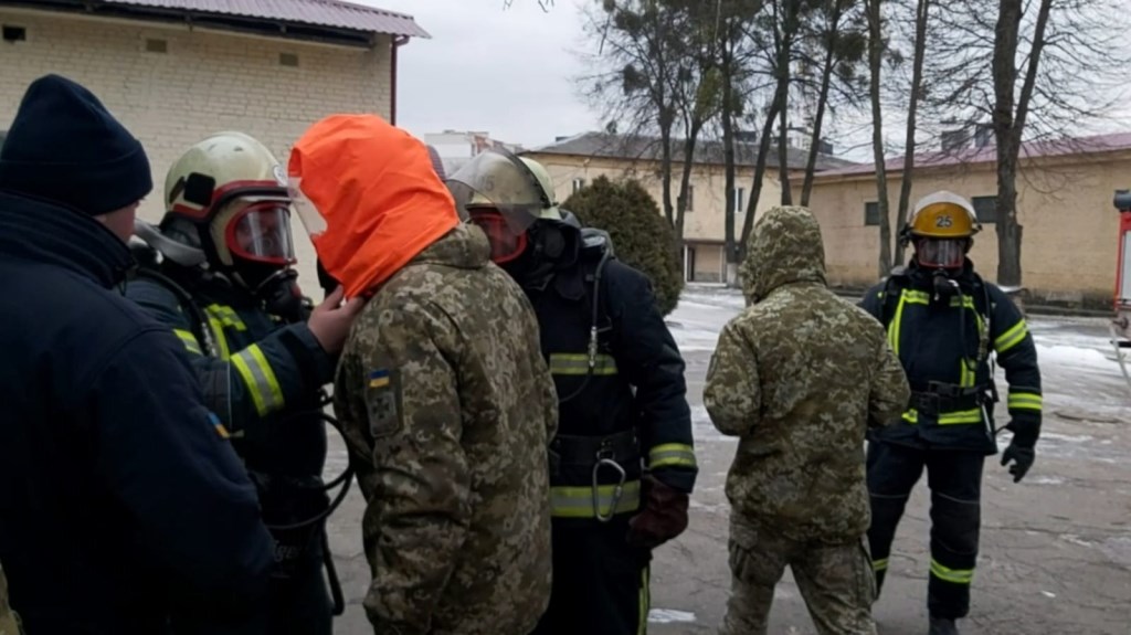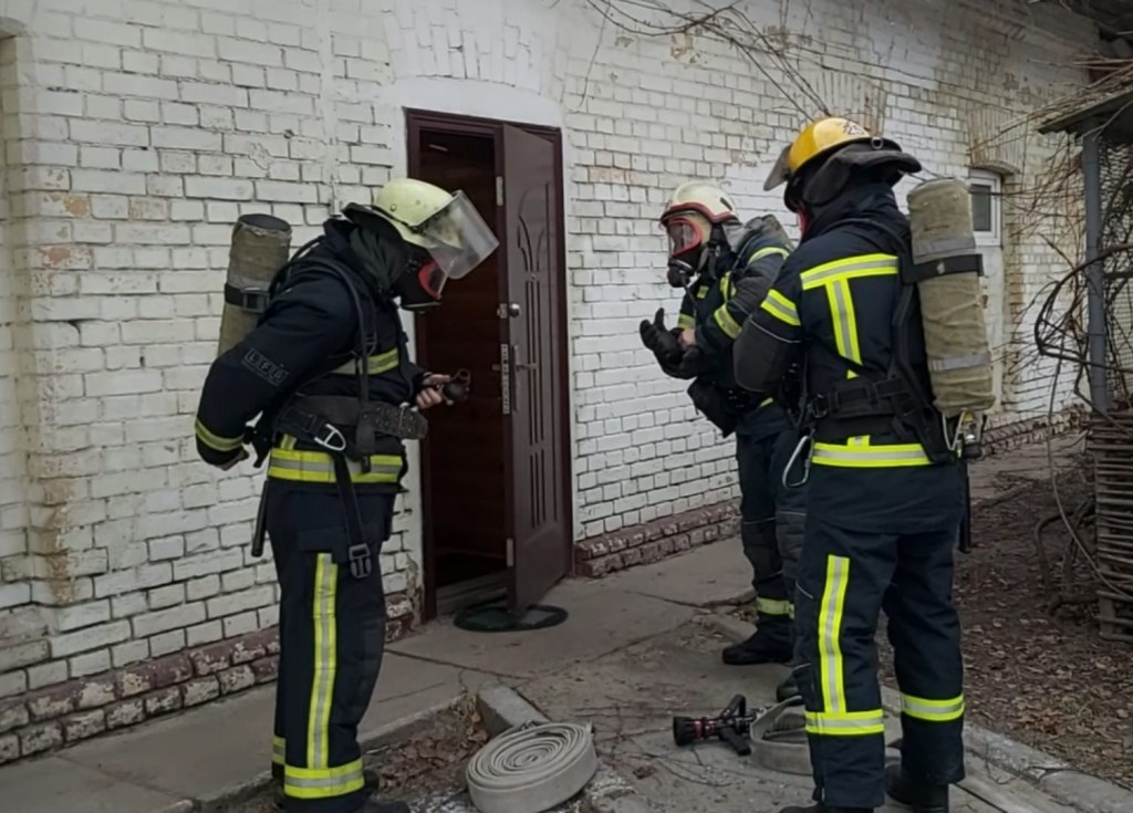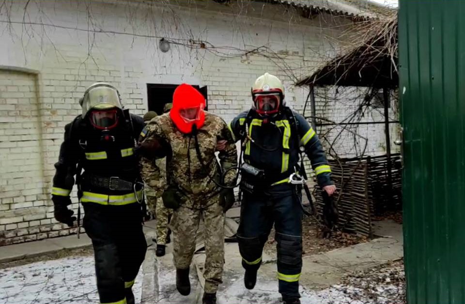 У ході тренування правоохоронці також вчилися евакуйовувати із задимленого приміщення осіб, які нібито отруїлися чадним димом.