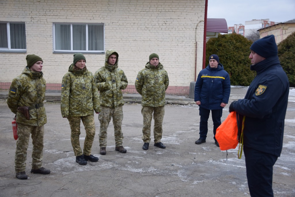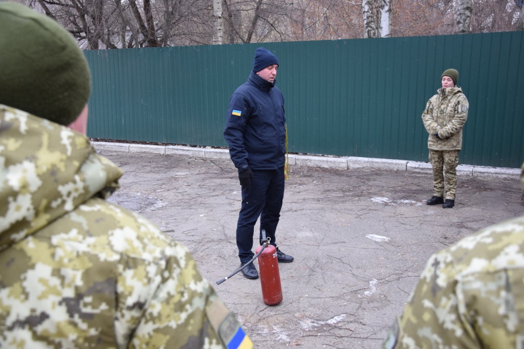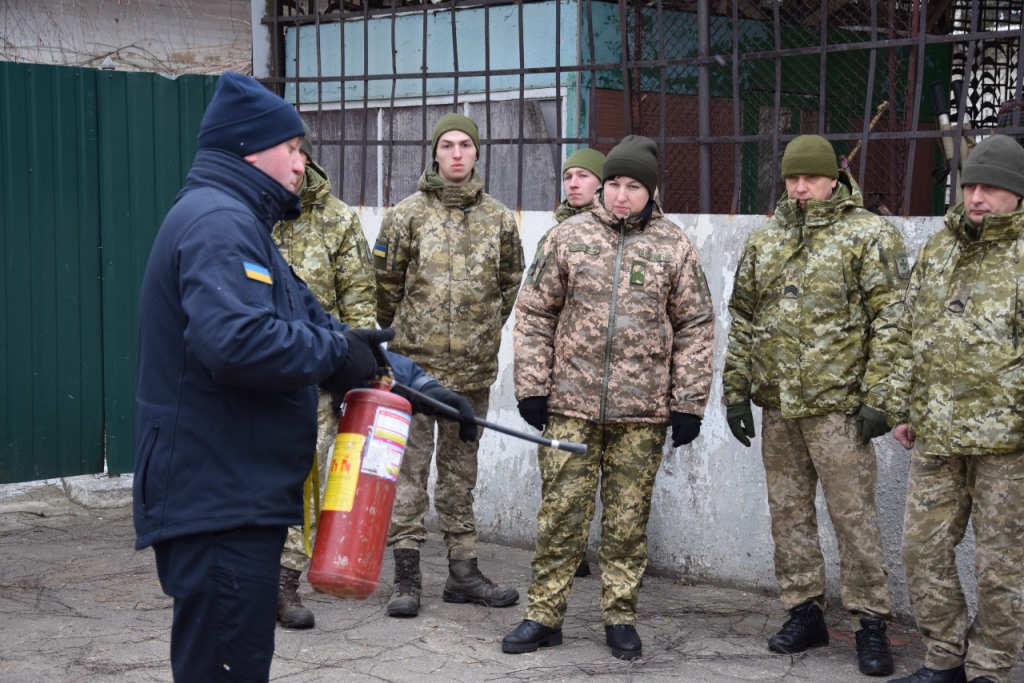 Крім того, надзвичайники провели з персоналом загону заняття на якому розповіли порядок дій під час виникнення пожежі, як правильно користуватися вогнегасниками, та нагадали військовим про заходи безпеки при ліквідації осередків загоряння.