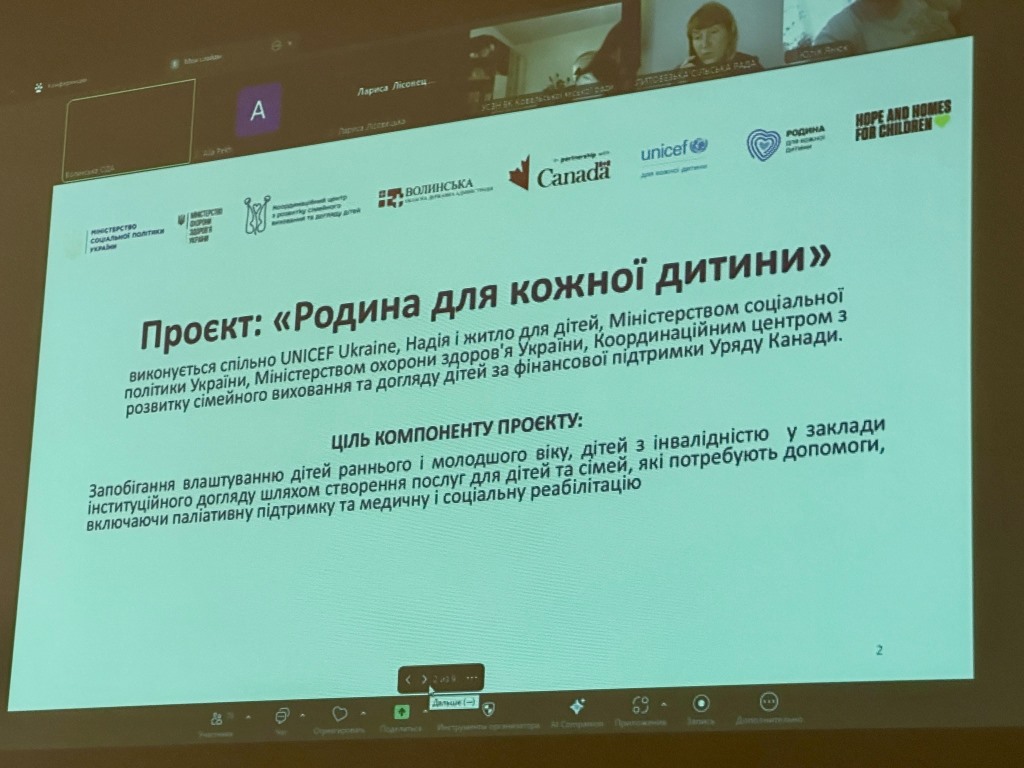 «Цього року ОВА та благодійною організацією «Надія і житло для дітей» за підтримки ЮНІСЕФ на Волині також розпочато реалізацію проєкту «Родина для кожної дитини», головною метою якого є зміцнення системи підтримки дітей з інвалідністю та їхніх сімей, прийомних родин, дитячих будинків сімейного типу та сімей опікунів, які виховують дітей з інвалідністю, а також створення спеціалізованих прийомних родин для дітей з особливими потребами. Ми очікуємо, що в процесі реалізації цього проєкту здійснять глибокий аналіз та напрацюють конкретні пропозиції щодо трансформації інституційних закладів області, аби у підсумку ухвалили зважені та професійні рішення», – зазначив голова робочої групи, заступник очільника ОВА Роман Романюк.