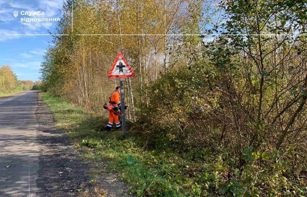 Водночас на автошляху Р-14 проводять роботи з видалення порослі, щоб забезпечити видимість дорожніх знаків та інших елементів облаштування дороги.