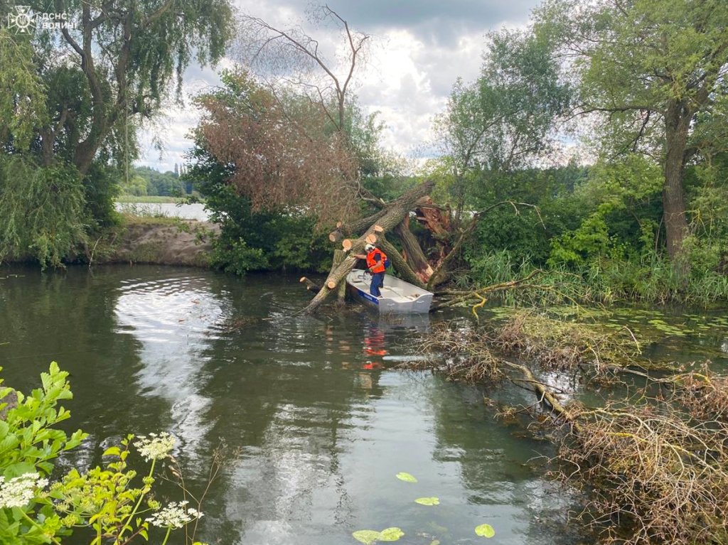 На місце виклику прибуло резервне відділення групи аварійно-рятувальних робіт, човном дісталися до поваленого дерева і за допомогою бензопили, рятувальних мотузок розкрижували дерево та лебідкою на спеціальному автомобілі дістали дерево з річки.