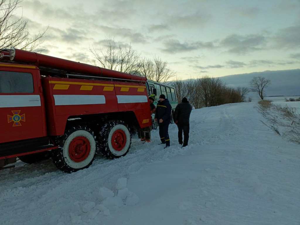 Пожежним автомобілем підвищеної прохідності вогнеборці відбуксирували автобус та автомобіль із заметів.