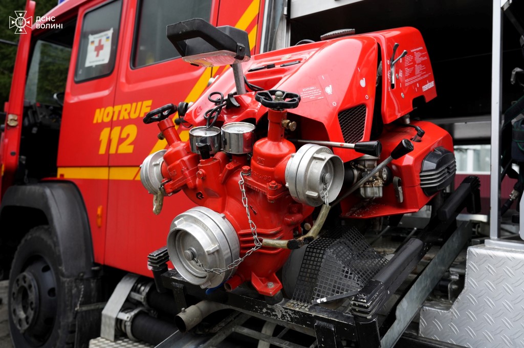 Важливою частиною візиту стала передача чергового гуманітарного вантажу: за сприяння партнерів для потреб однієї з відомчих пожежних команд області було передано пожежний автомобіль та необхідне пожежно-рятувальне спорядження.