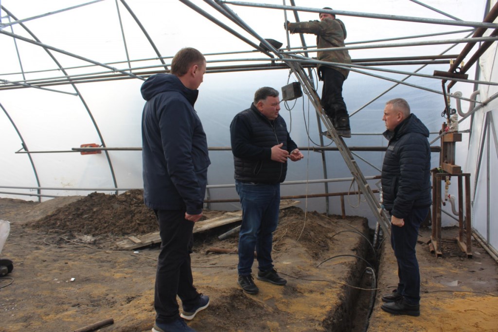 Заступник голови Волинської обласної державної адміністрації Олександр Троханенко та директор департаменту агропромислового розвитку ОДА Юрій Юрченко відвідали господарство, оглянули будівництво теплиць та закладку перших саджанців.