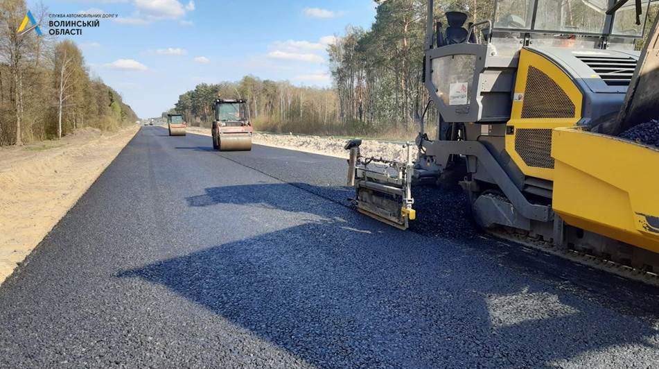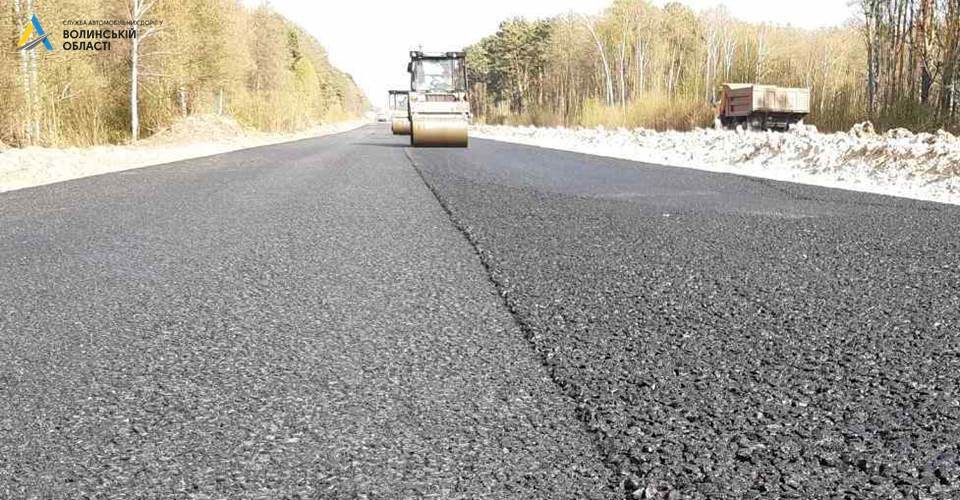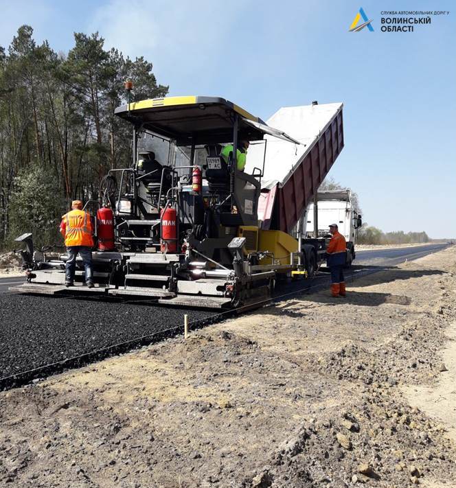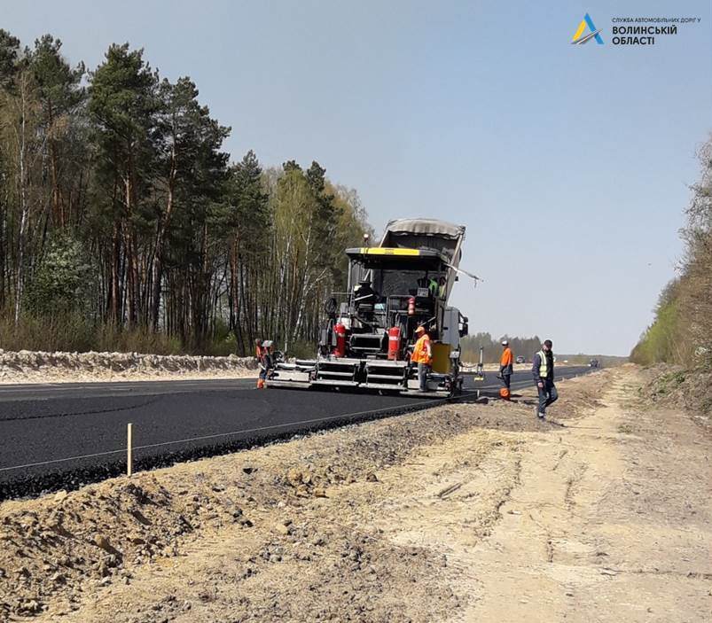 Завершивши розширення проїзної частини, що має цементно-бетонне покриття, з існуючих 7-ми до запроектованих 9,2 метрів, підрядне підприємство ТзОВ «Луцькавтодор-Сервіс» приступило до влаштування вирівнюючого шару із щебню, обробленого бітумом. Згодом по ньому укладуть ще три шари асфальтобетонного покриття загальною товщиною 20 см.