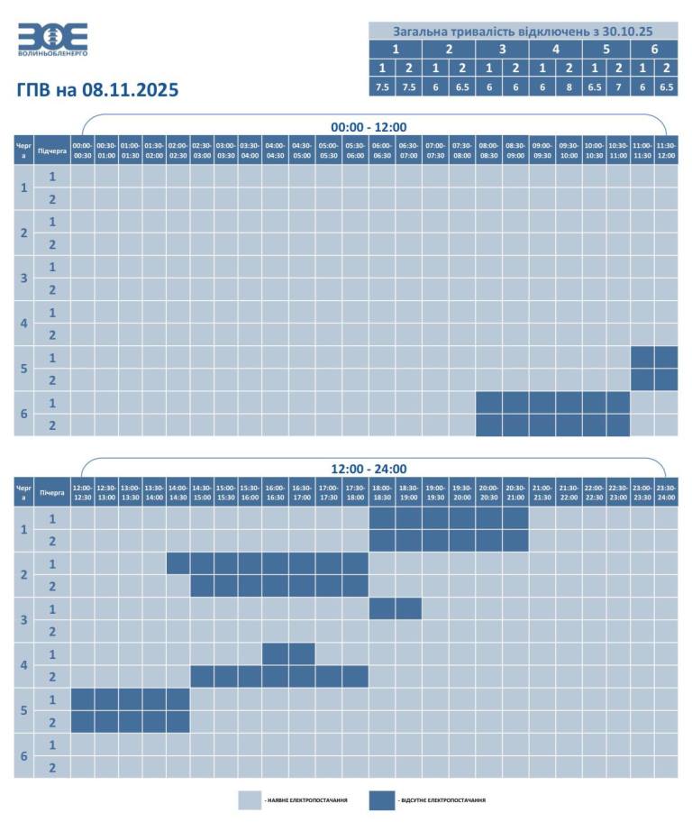 Час фактичного відключення та відновлення електропостачання може відрізнятися на 20-30 хвилин через технологічний процес перемикання черг.