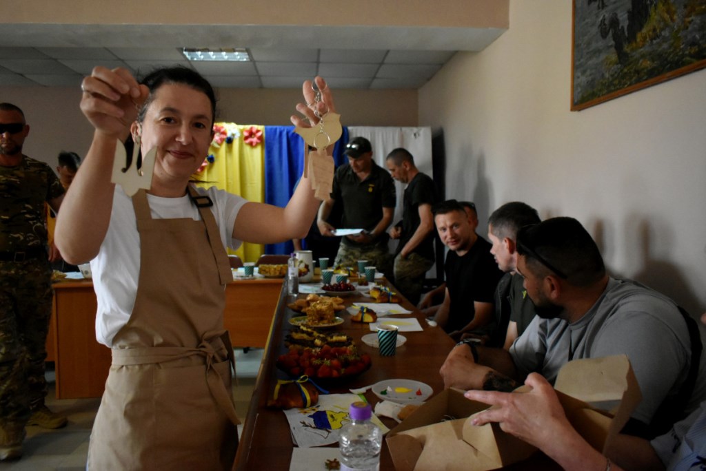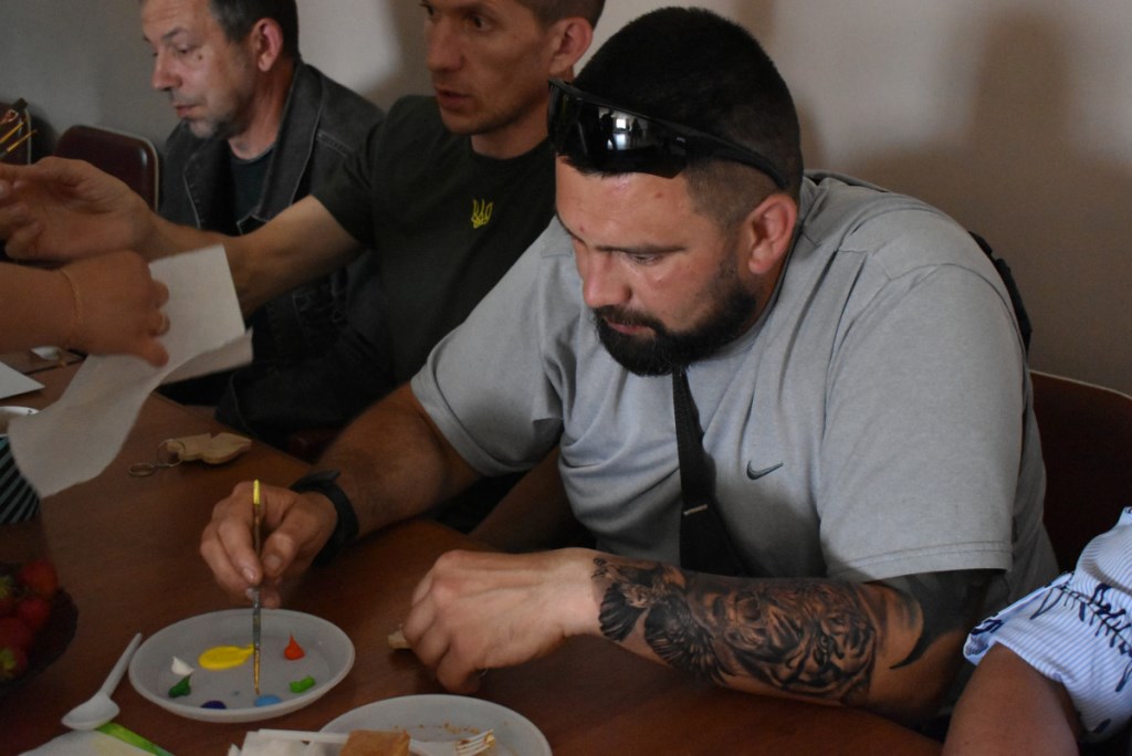 У школі для кожного із воїнів підготували теплі та щирі дитячі малюнки. А майстриня із Княгининка провела майстер-клас із творчого розпису. Хтось захоплено, а хтось без поспіху та обережно розфарбували символічні дерев’яні брелоки.
