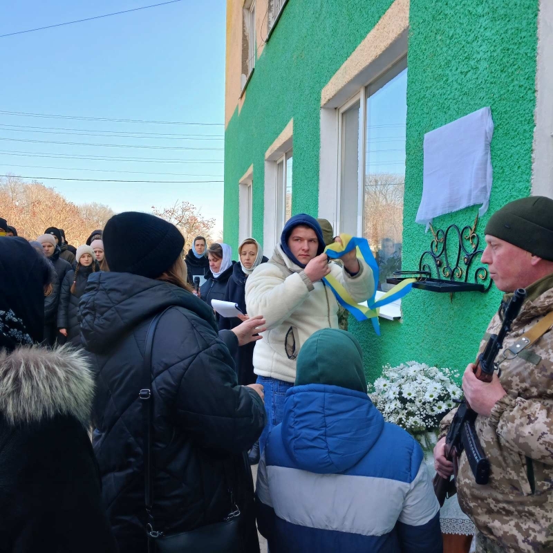 Почесне право відкрити меморіальну дошку надали рідним загиблого захисника.