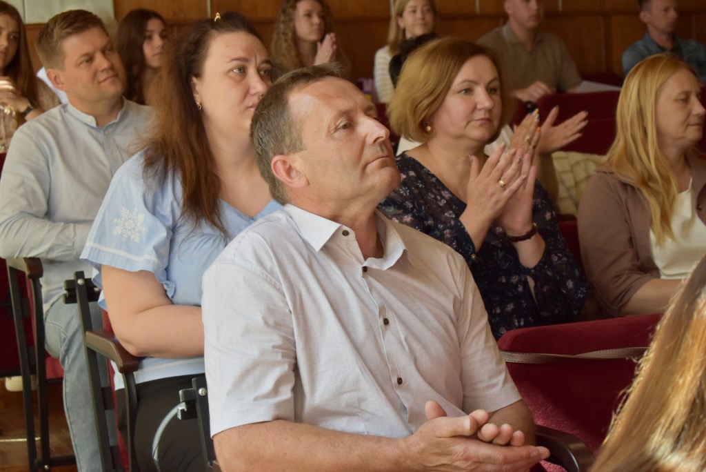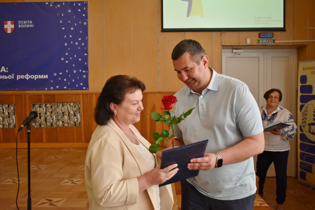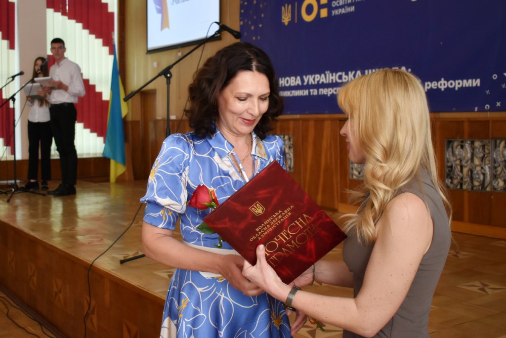 «З народженням дитини найголовнішою для неї стає сім’я, коли дитина переступає поріг дитсадка – це вихователь, а коли дитина приходить у школу – найголовнішим стає вчитель. І від того який вчитель зустрів дитину в закладі освіти, залежить те, як складається її подальша доля та навчання. Сьогодні складний час. Сьогодні часто звучать повітряні тривоги – в класах та на вулицях. Але наші вчителі надзвичайно мудрі, сильні та наполегливі. Вітаю усіх вас з цим днем та досягненням високих результатів. Ви завжди перші! Дякую вам щиро», – привітала освітянську громаду очільниця управління освіти і науки Волинської ОДА Наталія Матвіюк, вручаючи нагороди.