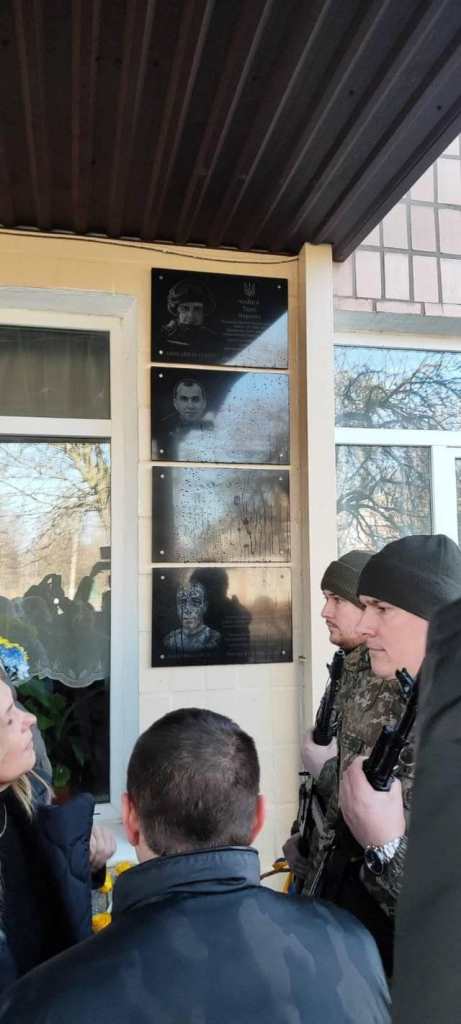 Також вiйськовослужбовцi вшанували пам’ять та взяли участь в урочистому відкриттi меморіальних дошок колишнім учням навчального закладу, воїнам Героям Парфенюку Олегу, Чайці Тарасу, Кобачу Андрію, Франку Юрію, які загинули в боротьбі за незалежність України.