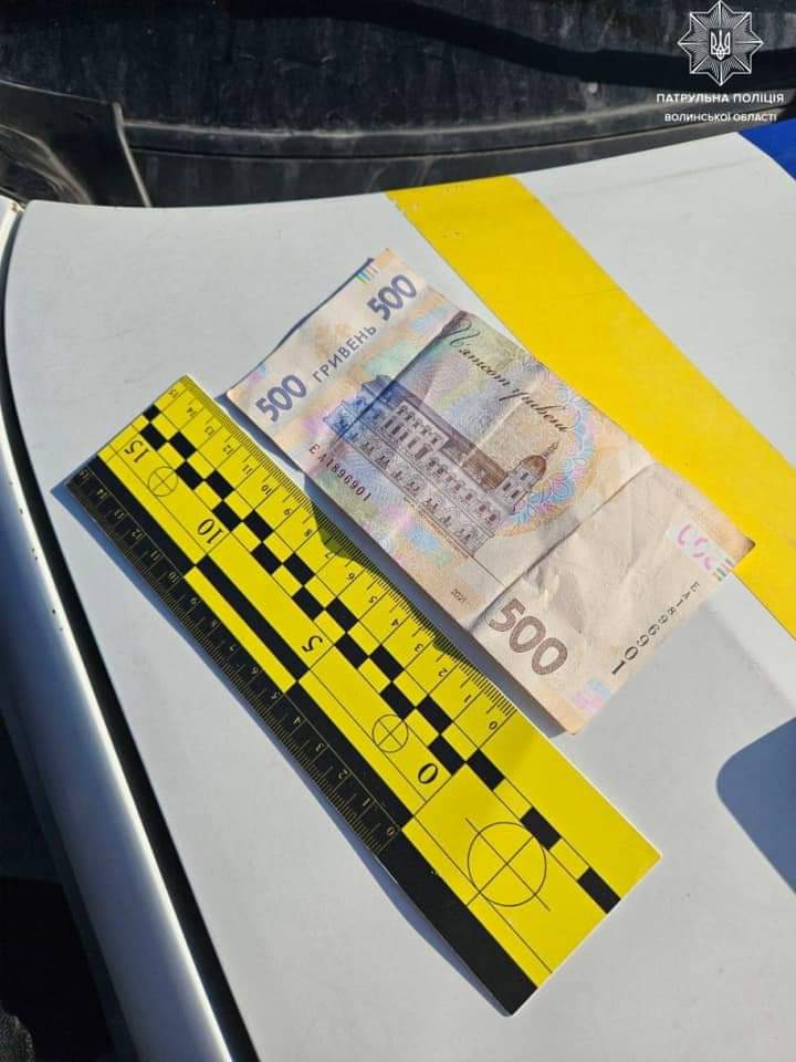 Коли ж патрульні повідомили порушнику, що за це є адміністративна відповідальність, чоловік почав пропонувати їм неправомірну вигоду, аби уникнути цього. Неодноразові попередження на нього не діяли. І він поклав в кишеню штанів поліцейському грошові кошти в сумі 500 гривень.